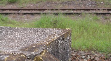 少し離れた位置からのホームの端。