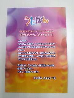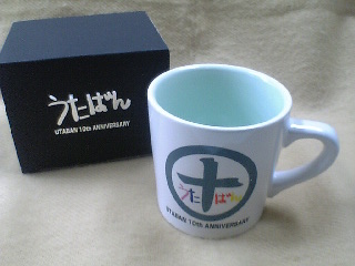 うたばん10周年のマグカップ。友達名義で出していたものが当たりました。
