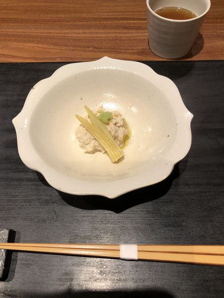 向付 汲み上げ湯葉 ヤングコーン添え