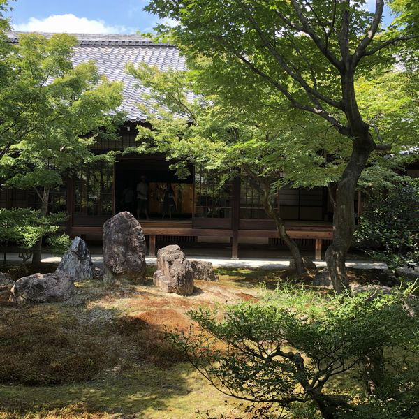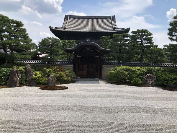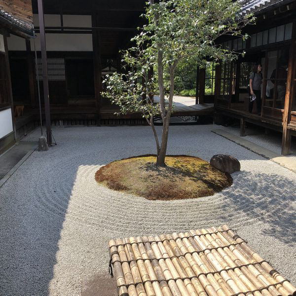 枯山水の庭「大雄苑(だいおうえん)」 方丈から法堂(はっとう)を眺めたところ。