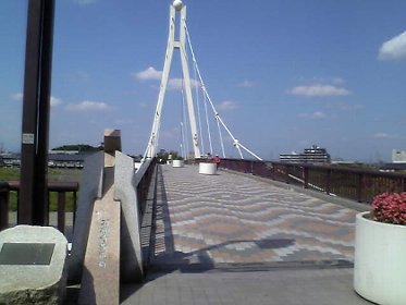 | 橋を自転車で通った朋美さんと話しました。 | 橋の上はこれ。歩行者専用です。 |