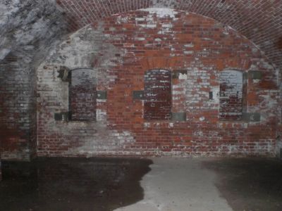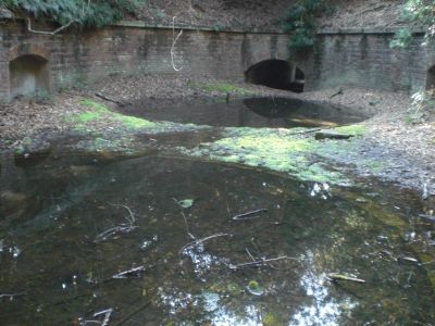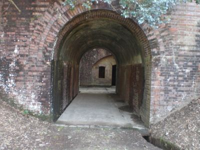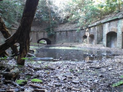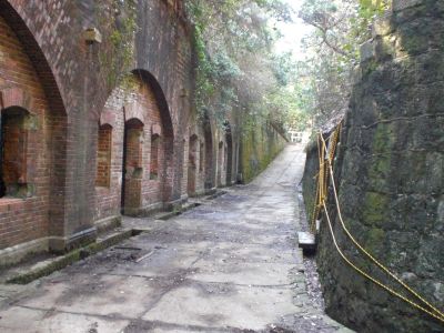 | 第3砲台跡。島で一番大きい砲台。全体がカメラに収まりませんでした。 | 12月と比べると異常に湿気が多く、水浸しなんです。 |