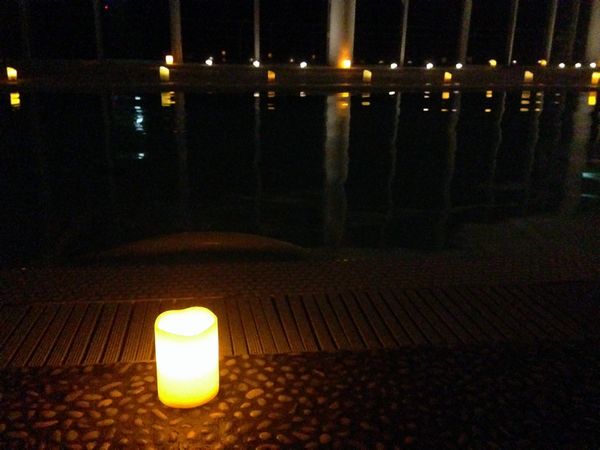 ![]() プールは8時から夜間照明になっていて、私たちは左のような暗い中で あの青いやつに頭と足を乗せてぷかぷかしました。 明るい写真は、翌朝撮らせてもらったものです。 朝はジャグジーになってなかったですが、夜はぶくぶくしてました。 |