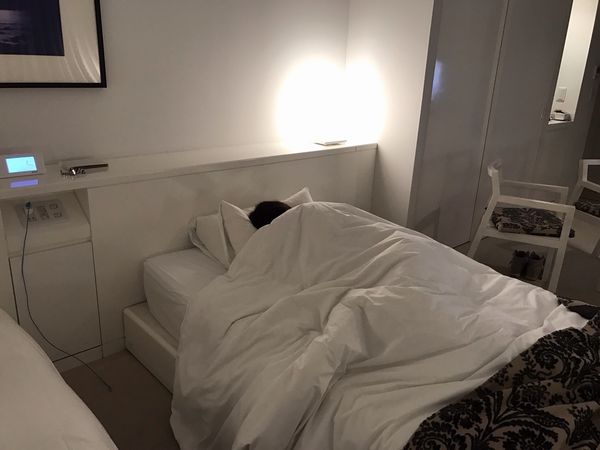 ![]() 中居さん風に寝てみました。(ただし、夜です) |