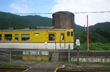 黄色い列車と給水塔。