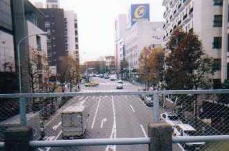 原宿陸橋 5人が並んでいたところ。 思ったよりずっと狭くて車が1台通れるくらい(右の写真)。 向こうに見える交差点が、5人が歩いていた交差点です。 ほんと、手近で撮ったんやなーと実感。 左は歩道橋の上。